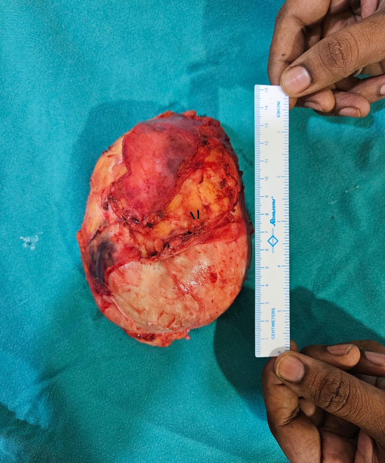 These challenges were thoroughly discussed with the patient, who ultimately agreed to proceed, expressing his desire to fight despite the difficulties. The entire surgical team, although sceptical, was well-prepared and motivated to succeed. The surgery was indeed challenging, but we proceeded methodically as planned. After about three hours, we successfully removed the tumour. Thankfully, there was no injury to the rectum or urinary system, and we managed to preserve the nerves.